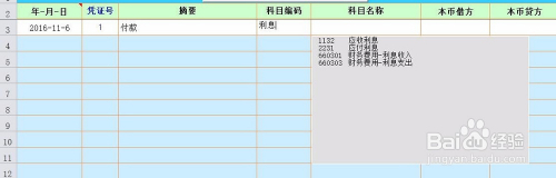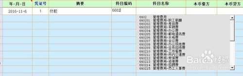 (2.1)在科目代码位置输入时,会主动按照输入内容供给所有可能的备选科目。