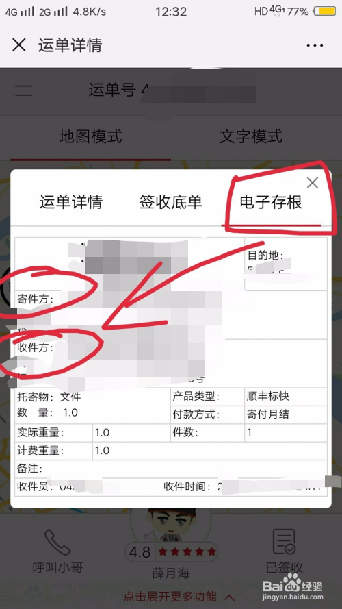 当然,你点击旁边的电子存根也是能显示寄件方的信息,如许就可以便利查阅了。