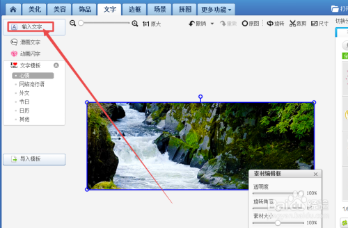 打开之后,点击上面的文字菜单选项,在打开的页面中点击左上角的输入文字选项。