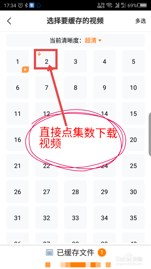选择完下载清楚度后,直接点击集数就可以下载了。