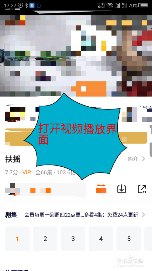 在播放界面剧集上面有个标的目的下的箭头,就是下载选项,点击一下。