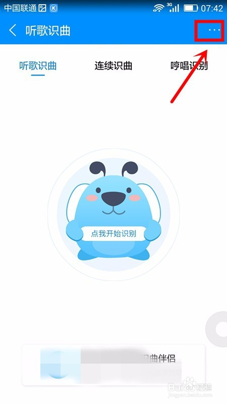 此时,我们就可以看到在手机屏幕上显示听歌识曲页面和页面中的本家儿要板块内容;