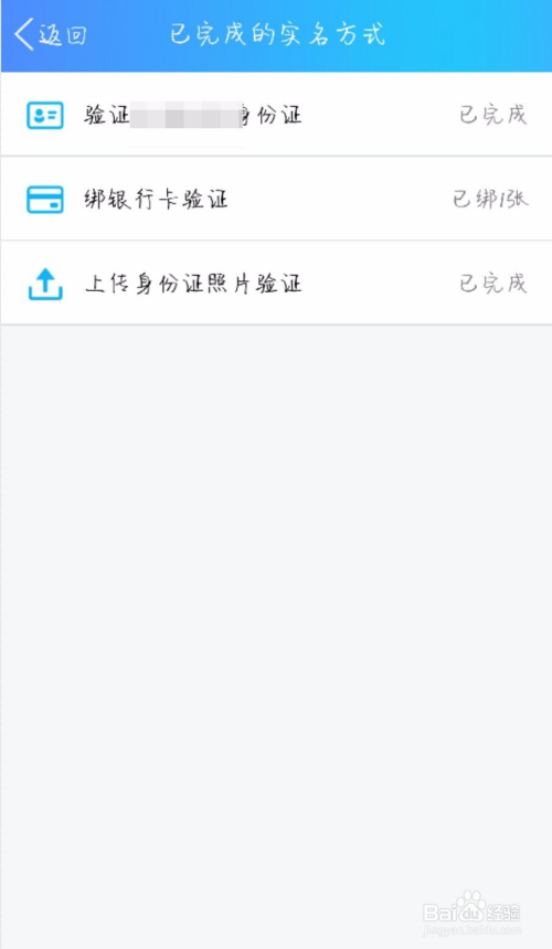 进入到【已完当作的实名体例】页面之后,就可以查看到已经经由过程了哪些实名认证了。