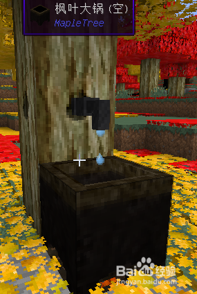 我们先要筹办枫糖萃取管、枫叶年夜锅、枫叶落叶堆、燧石和一个带有洞的枫树原木。