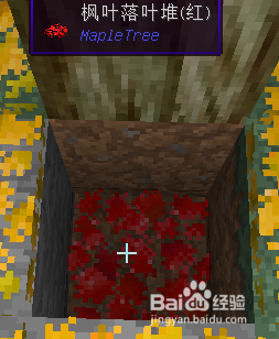 接着,我们在要放枫糖年夜锅的位置的下方挖一个1x1x1的坑,再放上枫叶落叶堆。