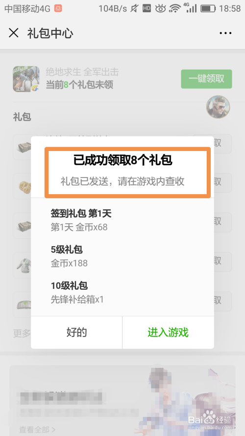 弹出提醒【已当作功领取礼包】,就申明礼包已经发送到绝地求生游戏账号中,如图: