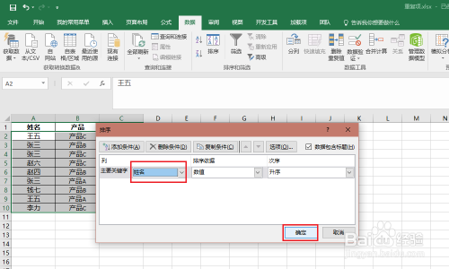 以下表为例。分类汇总前需要对数据进行排序。选中所稀有据,点击“数据”菜单下的“排序”。