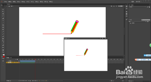 将小铅笔图形元件直接复制粘贴到flash软件的库中(若是你想领会如何建造一个小铅笔的图形的话,可以去看我之前的百度经验),在将小铅笔图形元件拖入参加景的舞台中。