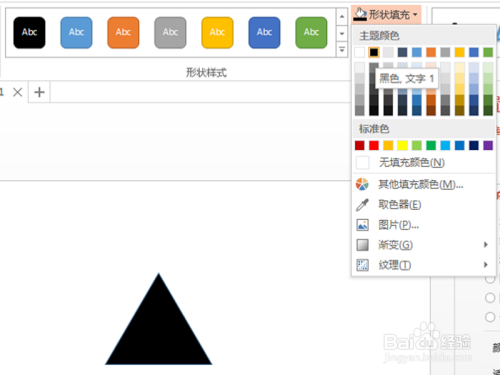 选择三角形,执行格局菜单,设置外形填充均为黑色。