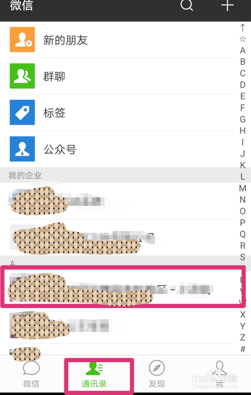 把微信打开,找到通信录,进入通信录找到要屏障的朋友圈的微信名,