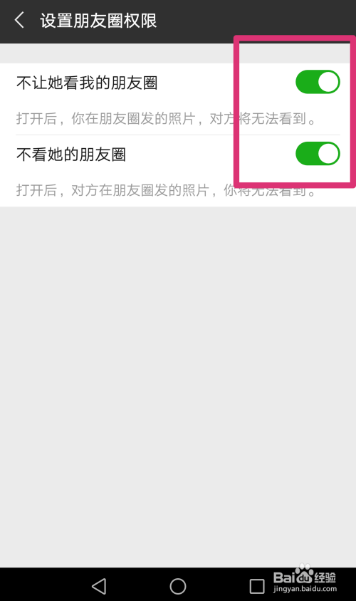 打开不看她的朋友圈,今后的她的照片就看不到了。若是同时也不想她看本身的圈,再打开下面标识,打开之后是绿色的,