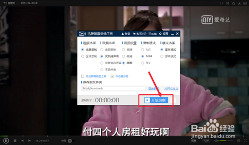 双击打开屏幕录制东西,置于《恋爱公寓》视频上方,为下面的录制做筹办如下图所示。