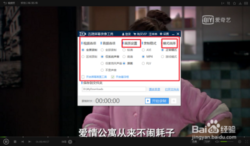然后设置画质、音频等参数,为录制《恋爱公寓》做筹办,如图。
