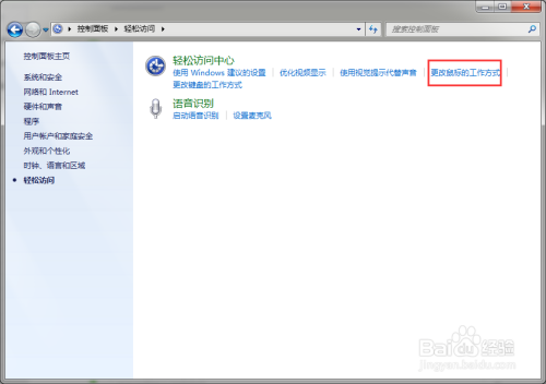 点击“更改鼠标的工作体例”按钮;