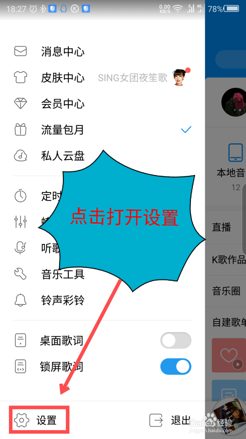 点击打开侧边栏后,点击最下面的设置选项。