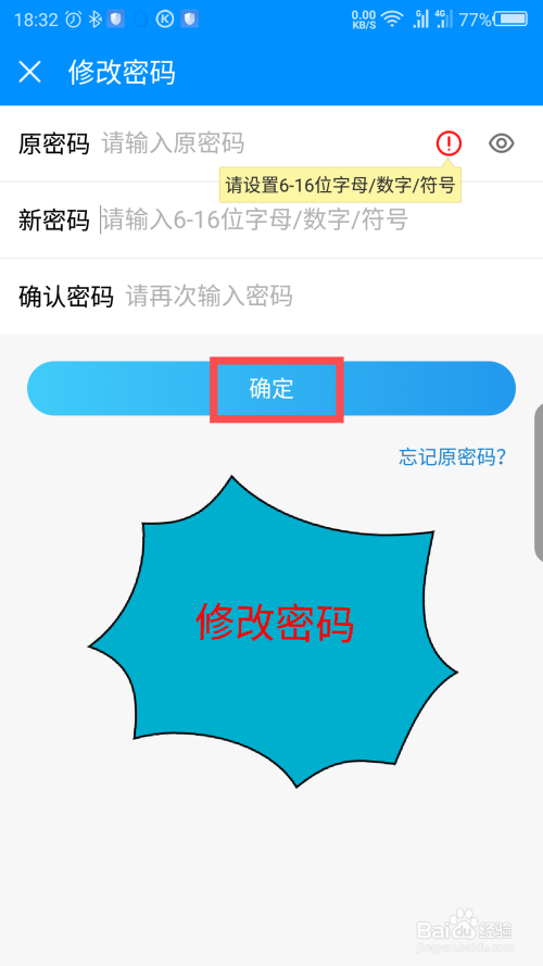在点窜密码界面,输入原密码和新密码就可以点窜密码了。