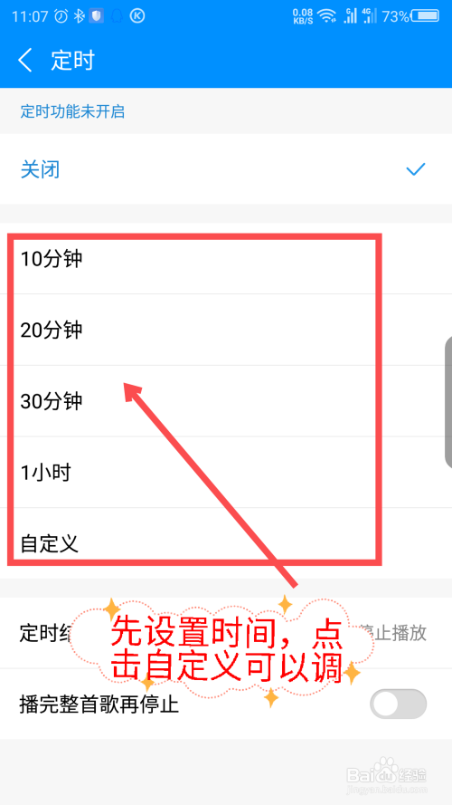 首先先设置按时封闭时候是几多,可以选择已经设定好的整不时间,也可以点击自界说本身设置时候。