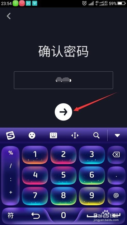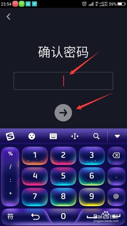 弹出再次确认密码界面,继续输入适才的密码,点击标的目的右的箭头。