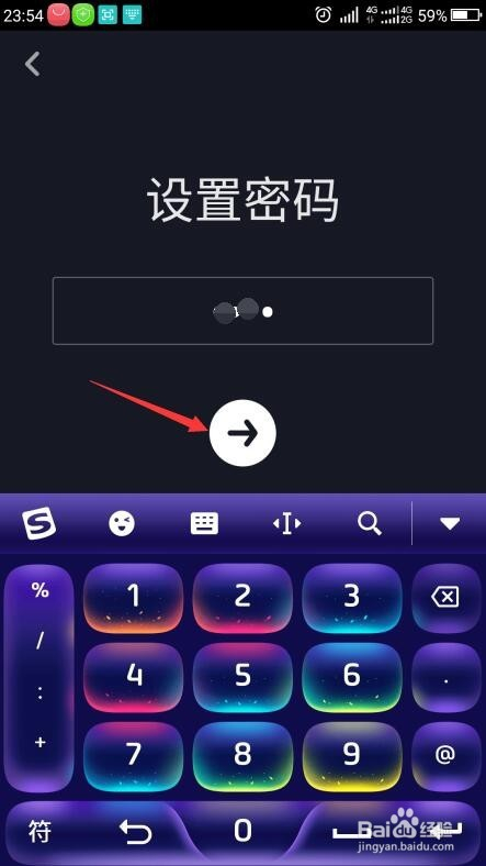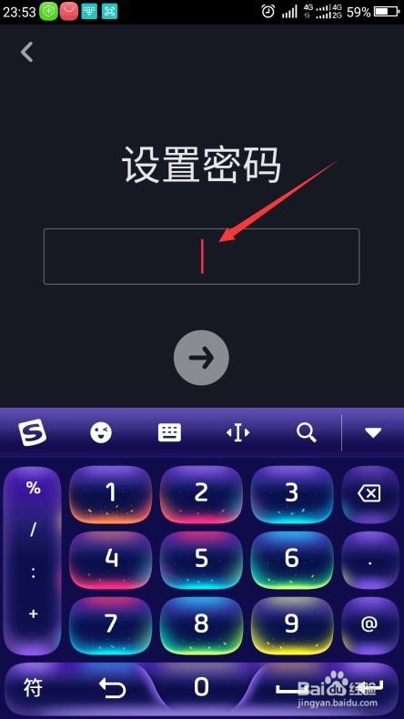 进入设置密码界面,在文本框内输入密码,点击下方的标的目的右箭头。