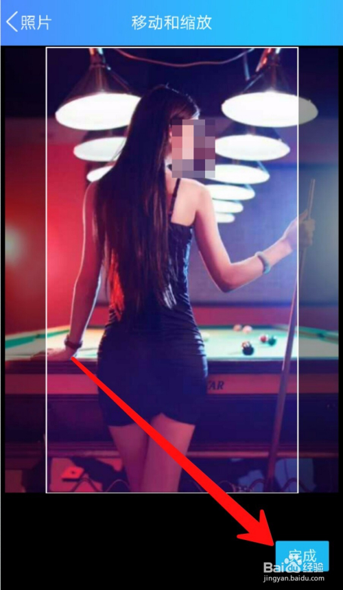 进入到相册找到喜好的图片之后,点击打开并将图片调整到抱负的位置之后,点击【完当作】即可了。如图所示