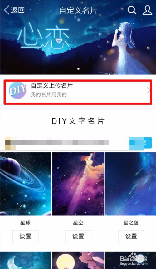 进入到【自界说手刺】页面之后,需要点击【自界说上传手刺】。如图所示