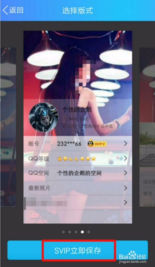 进入到【选择版式】页面之后,可以往摆布滑动选择一个喜好的版式、并点击底端的【SVIP当即保留】就可以了。