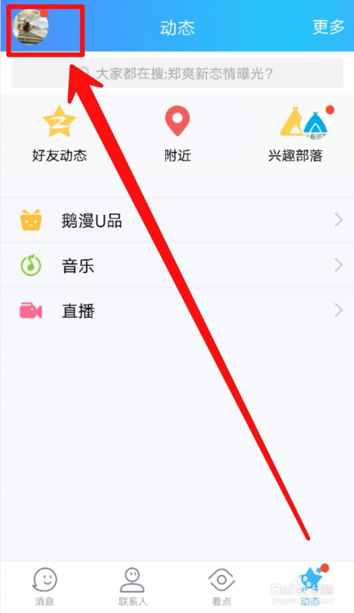 进入到这个页面继续点击箭头所指的头像。如图所示