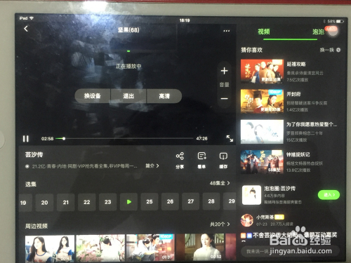 打开手机或者ipad等,选择本身喜好的视频,播放后点击右上角有TV标记的图标,选择坚果G7设备,这时辰可以看到喜好的节目投到了墙上.