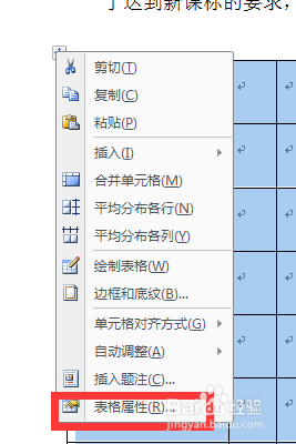单击鼠标邮件后,在出来的选项中选择【表格属性】。