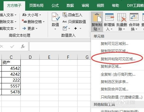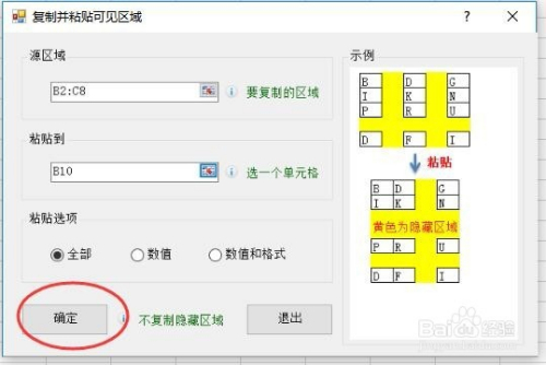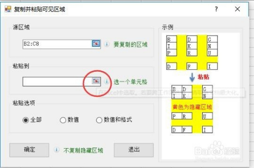 在弹出的窗口中,选择复制与黏贴可见区域