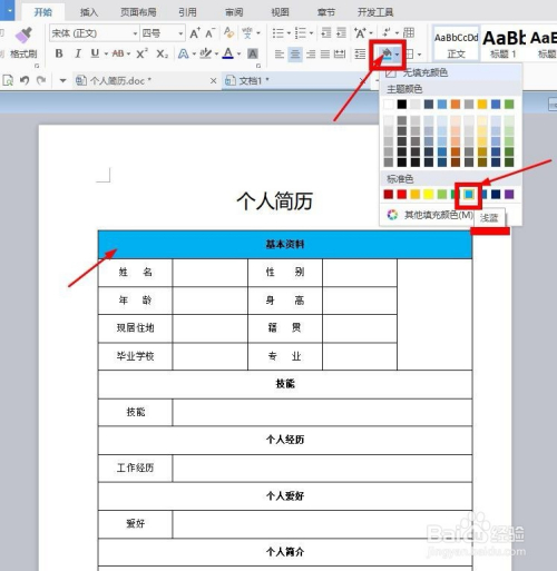 同样方式,把其他表格也做上浅蓝色,最后这个表格就完当作了。