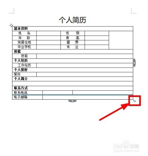 接下来只需要调整表格间距大小变美不雅。这里把鼠标移动到表格上就发现表格右下角呈现一个小图标,如图所示。我们把鼠标放在小图标上面按住鼠标不松然后往下拖动拉长表格,也可以往下拖动的同时恰当往右拖动将表格宽度变得宽一点,一个原则,铺在A4纸上表格不年夜不小即可,美不雅即可。