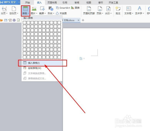 接下来来到第二行,并在“插入”里面找到“表格”,点开后呈现一个小表格,鼠标在上面移动就会选定出表格区域,我们好比想做10行5列的表格,只要滑动出如图式样即可。