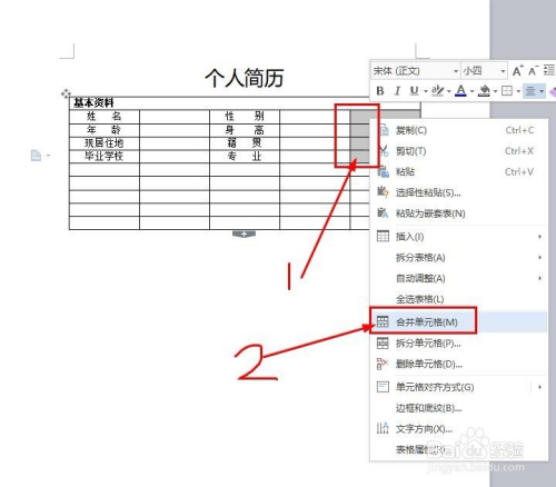 接下来把下面的信息完美,并把最后一列的四行选中并点击鼠标右键选择归并单位格。这个处所到时辰放照片。