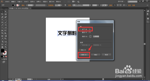 对文字添加倒影结果的方式在PS里面很简单,在Illustrator中略有复杂,需要借助剪切蒙版的来建造结果。