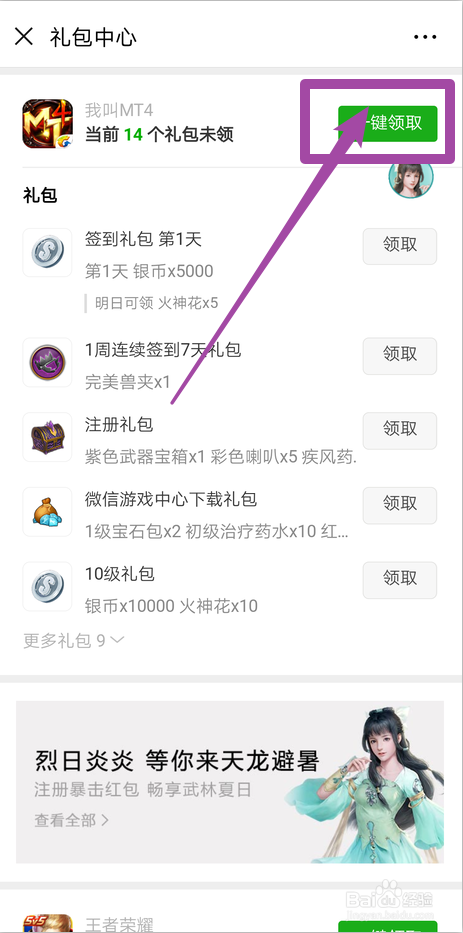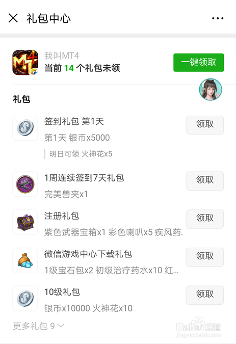 进入礼包中间,找到我叫mt4的礼包,点击【一键领取】