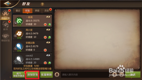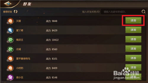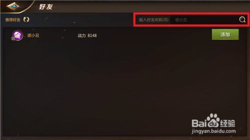 当然,有时辰我们想要添加固定的报酬老友,点击右上角的【搜刮】并填入老友的游戏名字,然后点击添加即可。