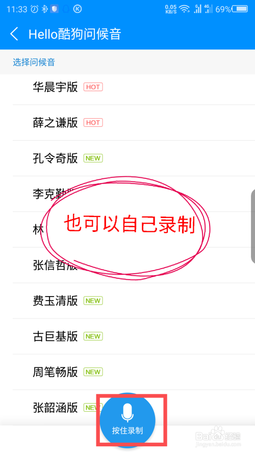若是想设置问候音,不想纯真的听hello酷狗,点击选择问候音。