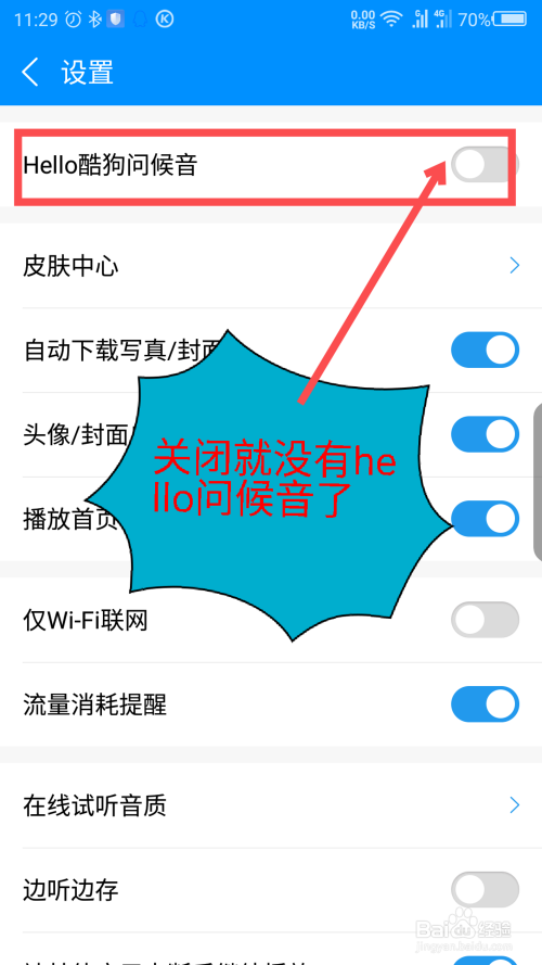 手机酷狗hello酷狗问候音怎么封闭,设置问候音