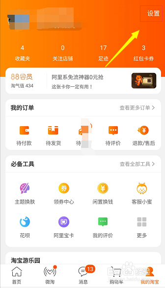 启动你的手机淘宝,进入首页,点击我的淘宝,如下图所示