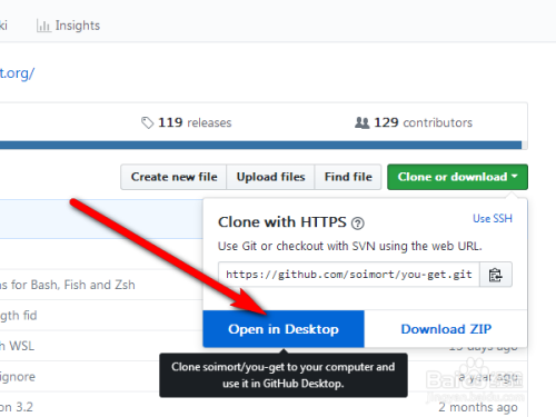 当你在研究一个github项目,想下载文件时,你可以点击open indesktop,然后你可以找到下载软件的链接。