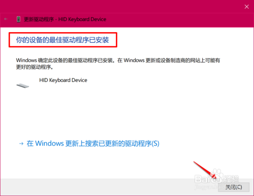 你的设备的最佳驱动法式已安装,点击:封闭。