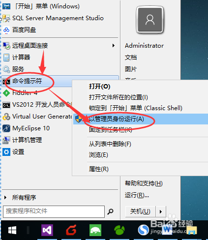 以办理员身份运行号令行东西,如下图所示: