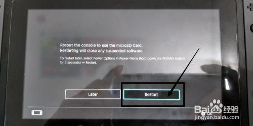 插入SD卡后,呈现提醒(意思是重启后才生效),点击【Restaet】