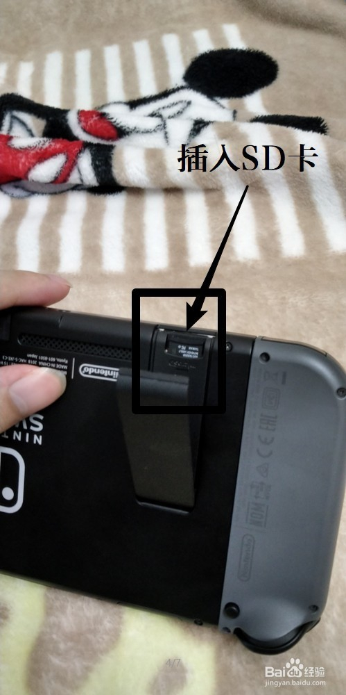 switch的SD卡槽是在支架里面的,所以拿出switch翻转到后背,找到支架