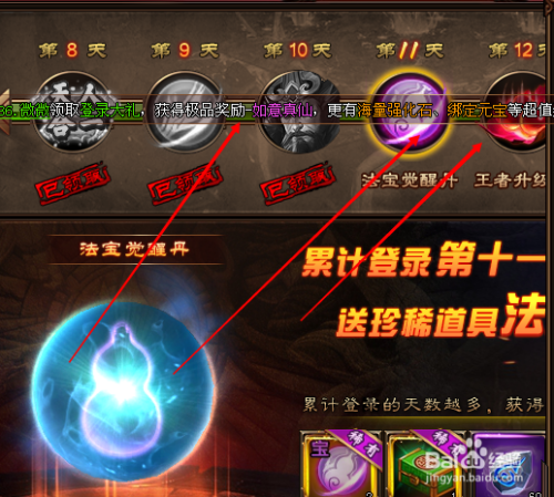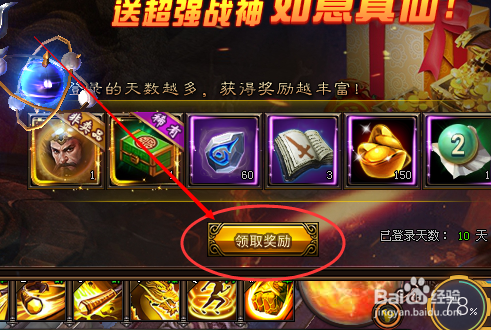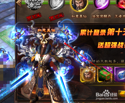 登岸10天就可以领取如意真仙,点击登岸礼包,如图。