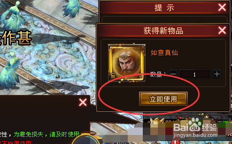 领取如意真仙后就要顿时利用,如图点击利用。