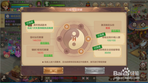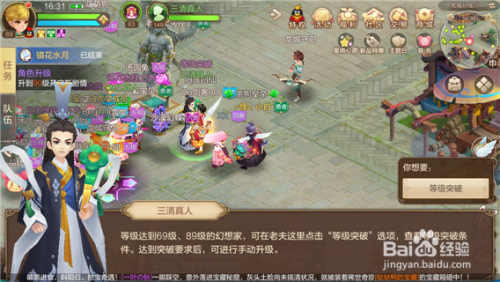 第九步,只要你6个前提全数知足了,我们就可以再次来到【三清真人】处,点击如下图对话框中的【进级】就可以达到90级了。