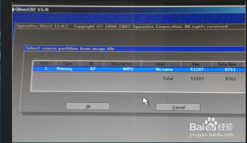 继续按回车键,红色暗示备份镜像地点的位置,默认都是还原到系统盘,若是不清晰可以看存储空间大小(size).....