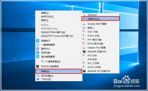 右键点击系统桌面空白处 - 新建 - 快捷体例;